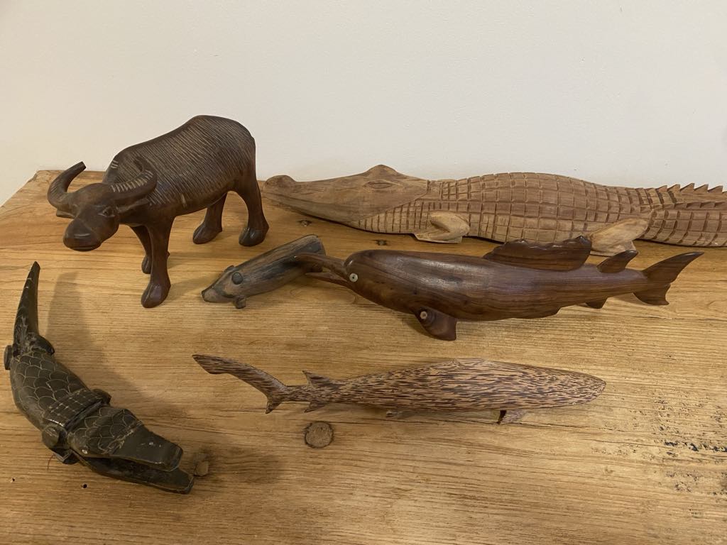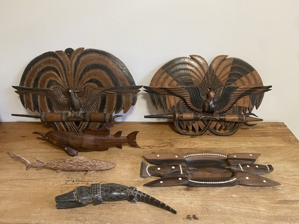 We have a variety of PNG carvings, intricately carved by master craftsmen. These include PNG bird of paradise, carved pigs, fish, crocodiles, birds, sharks, water buffalo and large marlin fish.